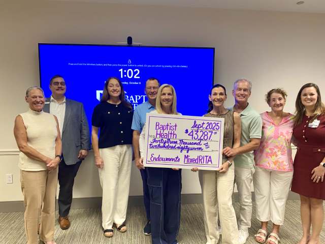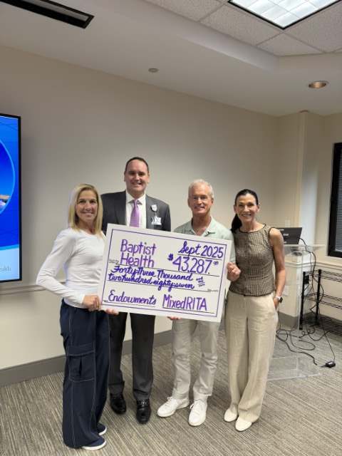 The MixedRITA Tennis Committee presented Baptist Health with a check for $43,287 to help fund our 6 outstanding Baptist endowments, with proceeds going to the LIFE Survivorship Program and future prostate care projects. This year, The MixedRITA was able to raise over $91,000, bringing our 9-year total to $530,000!